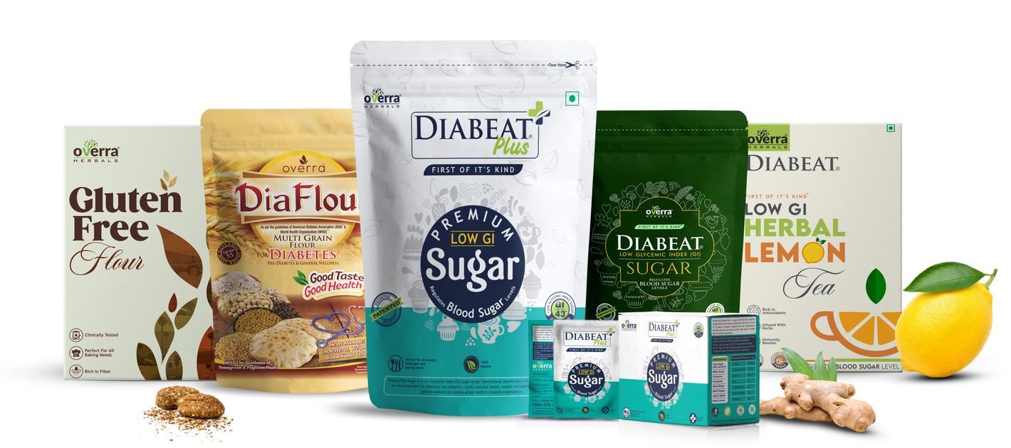 Today we are proud to have innovative Low GI diabetic-friendly food products like Diabeat Plus 43 GI sugar, Diabeat 45 GI sugar, Diabeat herbal Low GI lemon tea, Diaflour Low GI multigrain flour, Overra Gluten free multigrain flour etc. Now diabetics can enjoy sweets without fear of blood sugar rise. Not only that, the sugar is 100% natural and can be used in all beverages, cooking and baking needs.